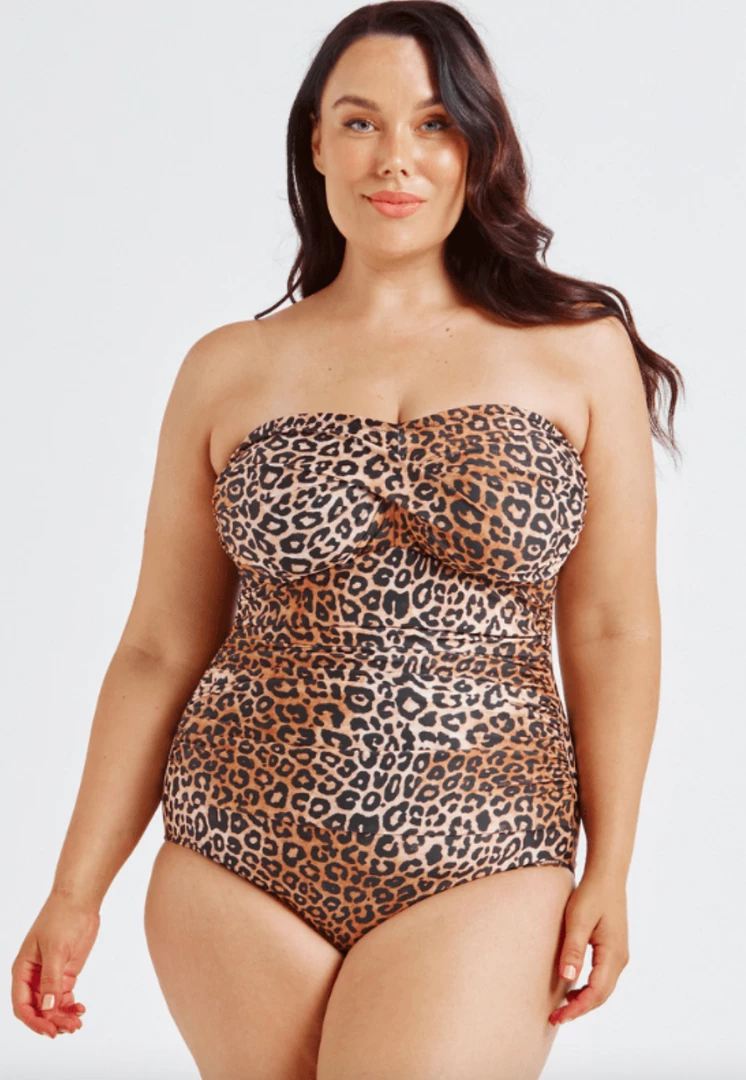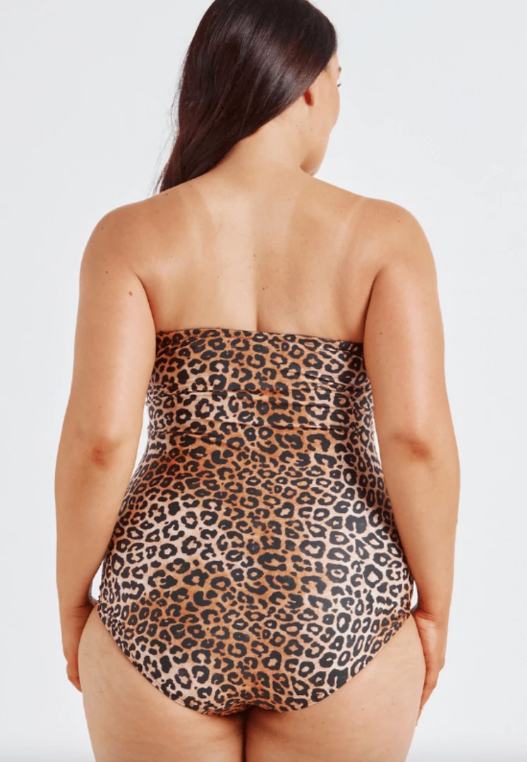 The twist front bandeau in sustainable Leopard print fabric is the latest addition to our strapless one piece collection. This swimsuit is made in partnership with Repreve, who create luxurious swim fabrics from recycled plastic bottles. The Leopard collection is our first sustainable range and you’ll love shopping these swimsuits knowing you’re helping our magnificent planet.