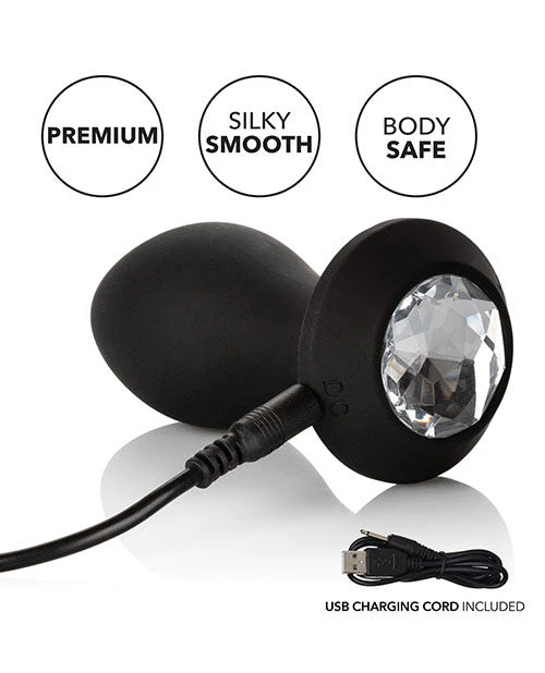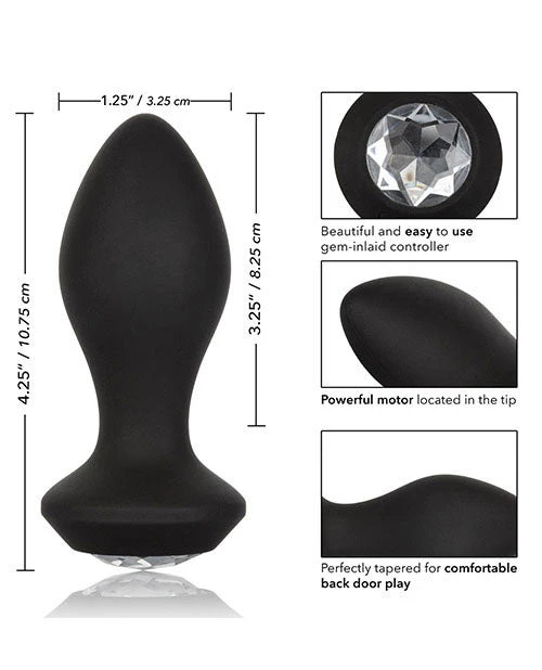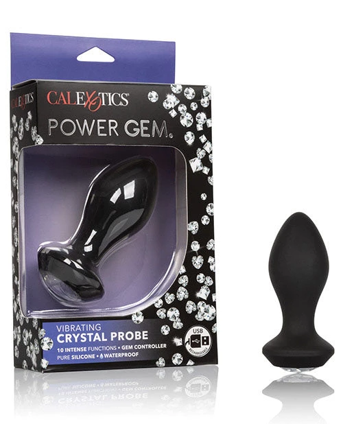 The Power Gem Vibrating Crystal Probe is a dazzling, flexible silicone probe created to ease you into thrilling anal pleasure. The pliable, ergonomic design and powerful vibe motors allow this probe to flex with your movements while delivering intense vibrations. Indulge in personalized pleasure while the sleek probe pulsates with 10 vivacious vibration, passionate pulsation and erotic escalation. Control this variety of orgasmic options with the easy-touch gemstone button. USB Rechargeable, cable included. 2 hour charge time for 2 hours playtime.