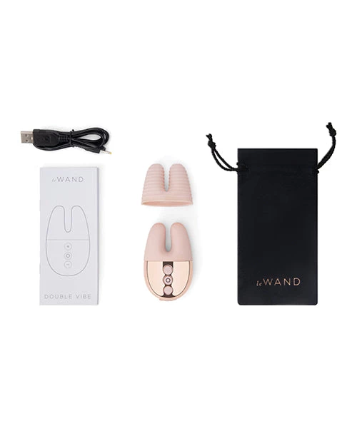Perfect for solo or couples play, Le Wand Double Vibe is a palm-sized, bunny-eared rechargeable vibrator that can nestle and satisfy even the smallest of pleasure zones. Featuring ultra-powerful motors in each of the pinchable vibrating ears, the Double Vibe provides 15 rumbly vibration modes and 6 arousing intensity levels- making it the most formidable vibe for its miniature size. Built with simple, intuitive controls for superior one-touch functionality, the Le Wand Double Vibe offers sensational dual stimulation where it matters most. In addition, this body-safe luxury vibe comes complete with an extra textured silicone sleeve for enhanced pleasure, a travel lock for adventures on the go, and an LED charging indicator and micro-suede travel pouch for discreet storage. Compact, mighty & exceptionally versatile, the Le Wand Double Vibe is the ultimate fun-sized pocket rocket. Travel Lock Whisper Quiet. Waterproof – IPX7 Dimensions: Overall Length – 3.34 inches Overall Width – 2.16 inches.