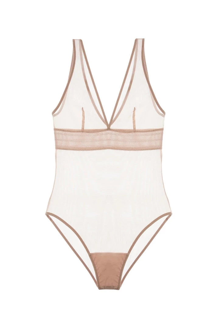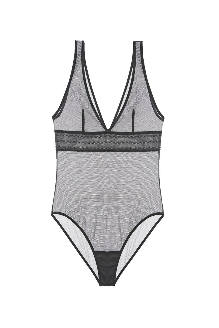 All thrills, no-frills: this soft triangle bodysuit is a minimalist’s dream. The sheer fabric skims the body, giving support, and makes it an ideal lightweight layering piece.