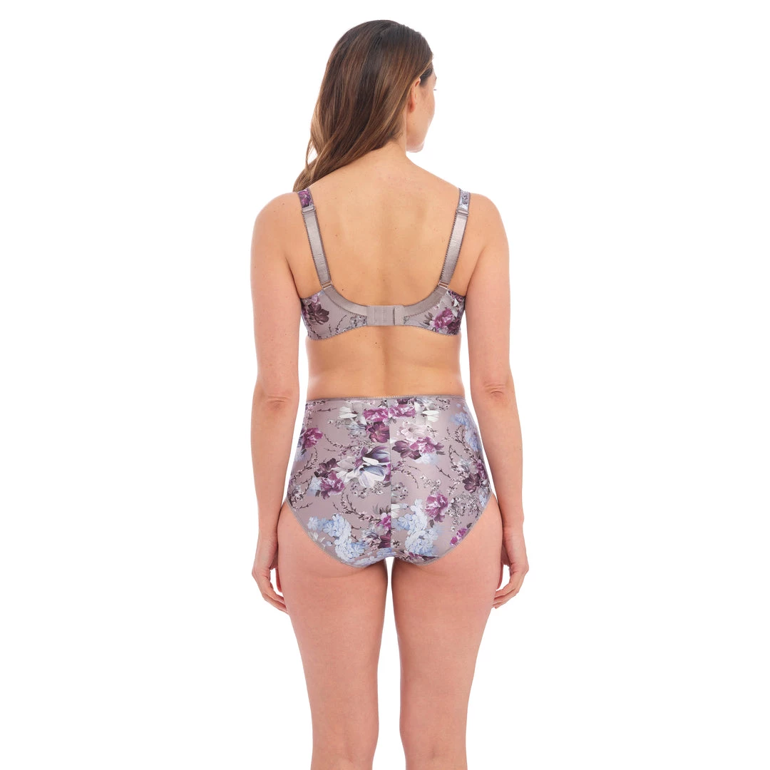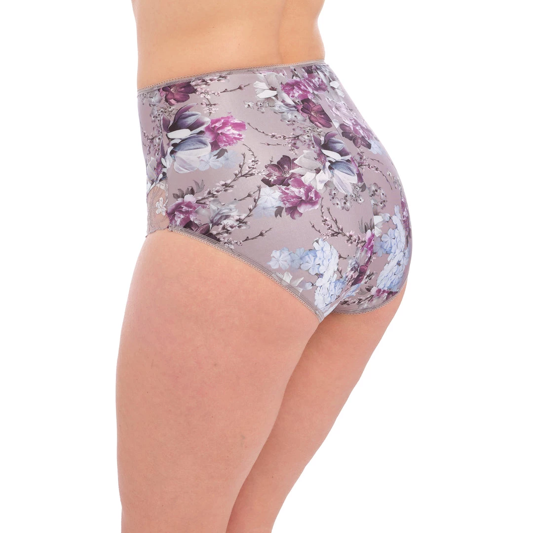 Crafted from soft fabric for all day comfort, Ellyn’s High Waist Brief in Vintage Blossom offers light control and smoothing, decorated with a feminine floral print and delicate Swiss designed embroidery adorning the front leg.