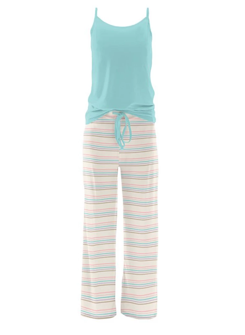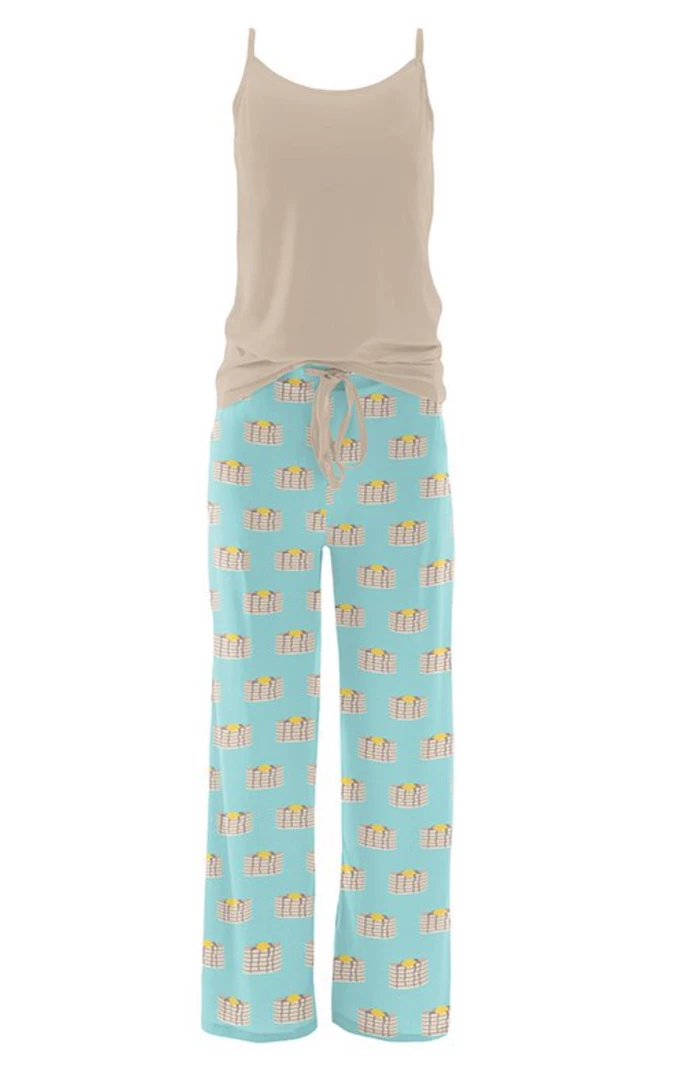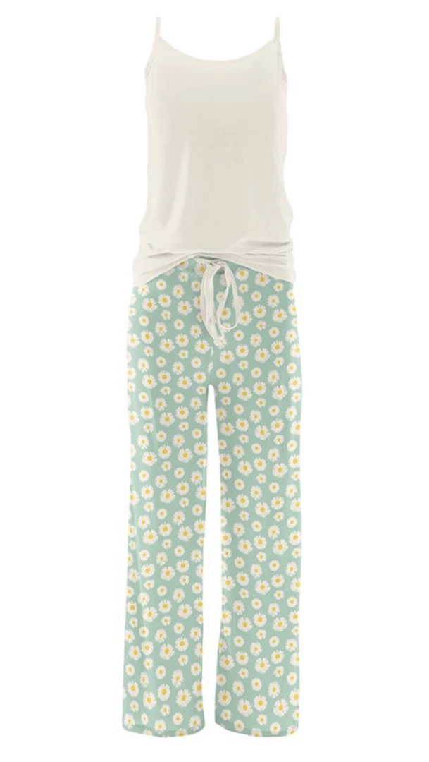 Paired with our new spaghetti strap cami, you’ll be in total comfort! This set fits loosely, so we recommend sizing down from our regular KicKee pajama size (or if you are in-between sizes).