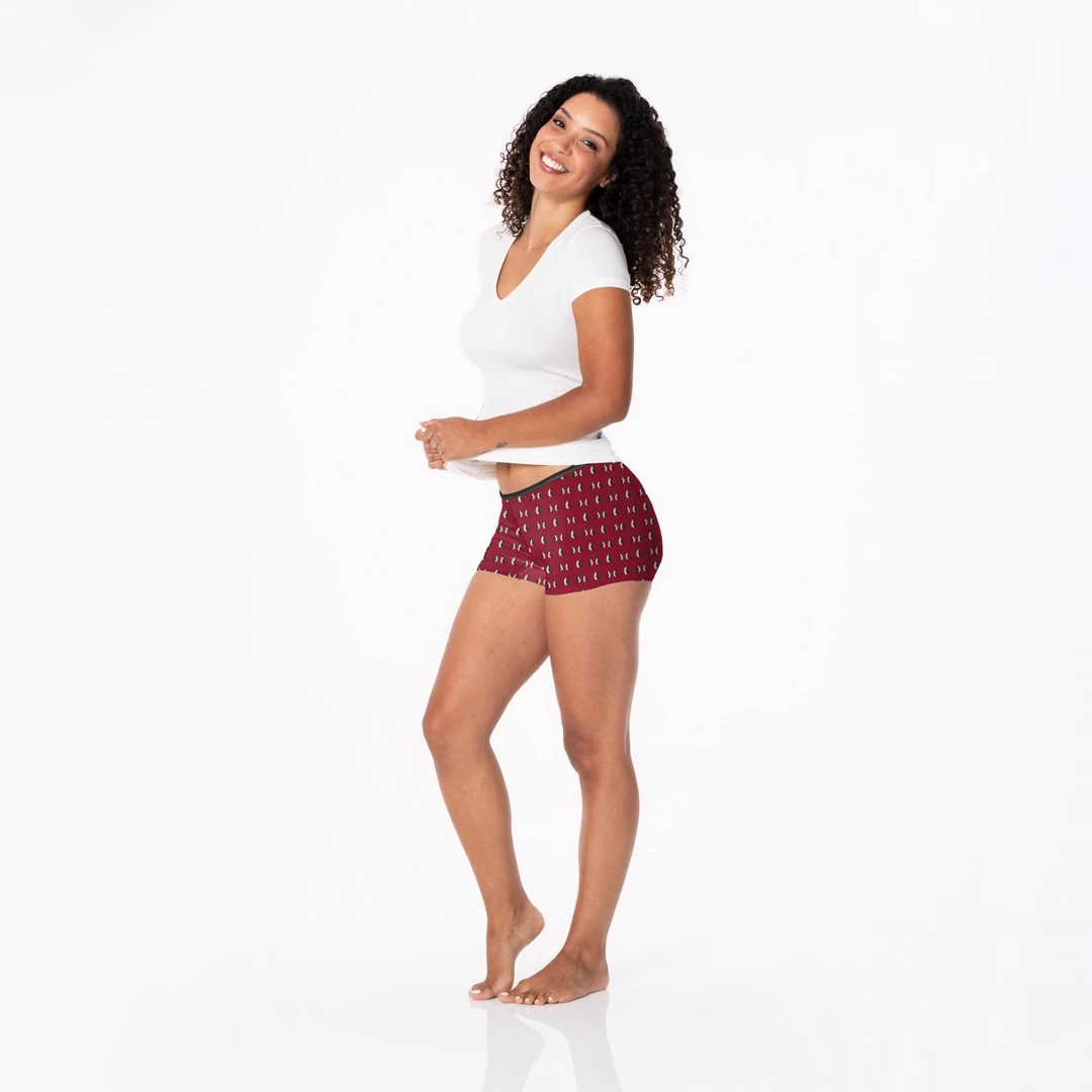 KICKEE PANTS SEASONAL Final Clearance Sale WOMENS BOY SHORT CRIMSON PENGUINS
