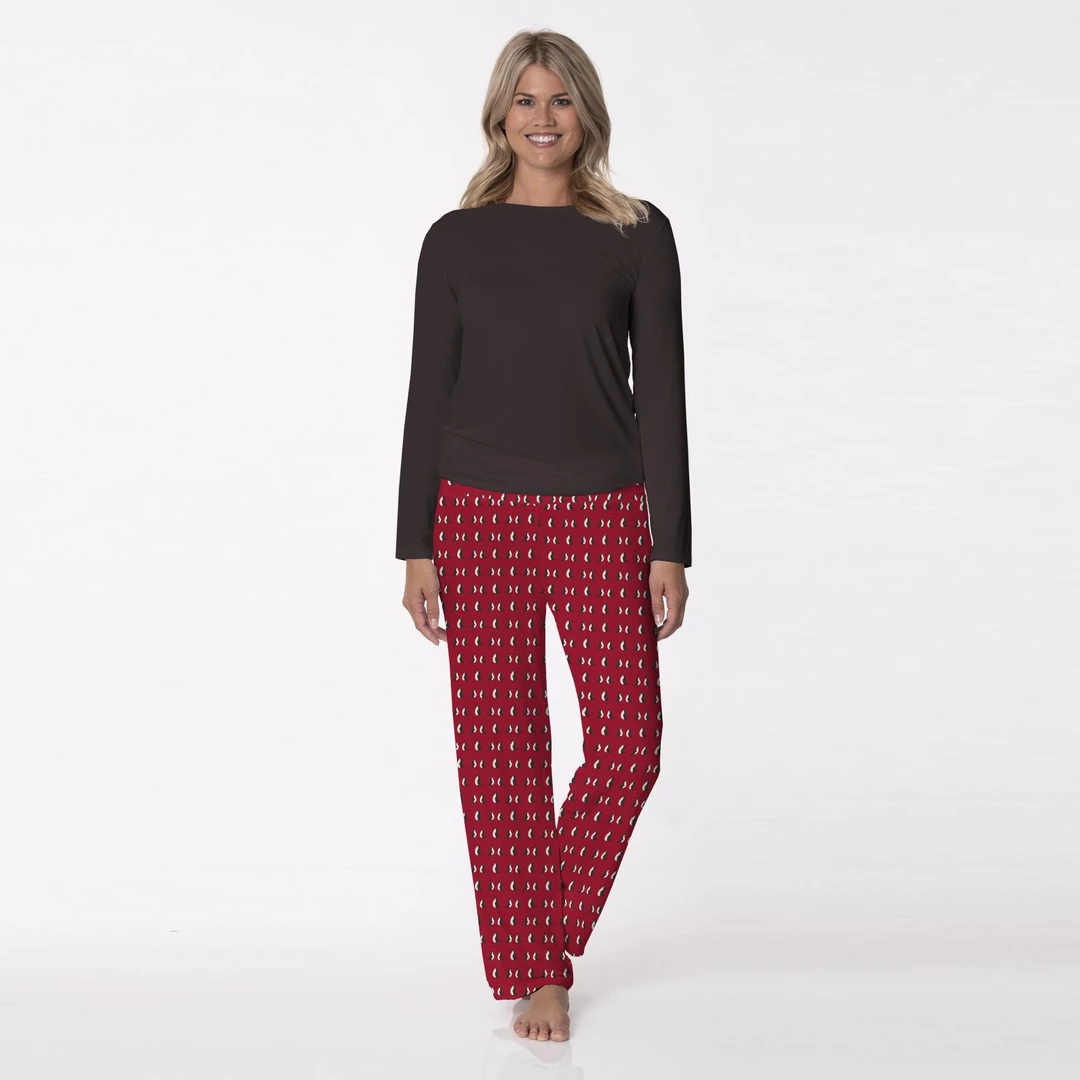 KICKEE PANTS SEASONAL WOMENS LOOSEY GOOSEY PJ CRIMSON PENGUINS Final Clearance Sale
