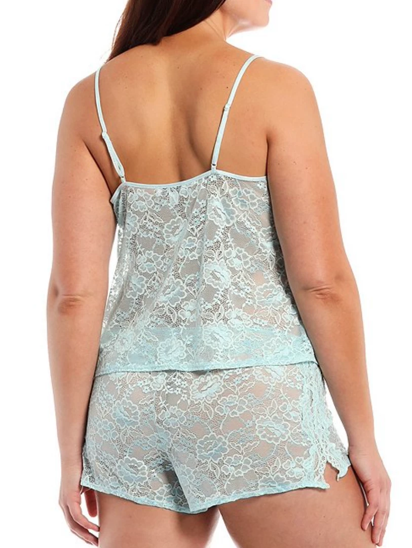 - Adjustable strap camisole with lace trimmed V-neckline
