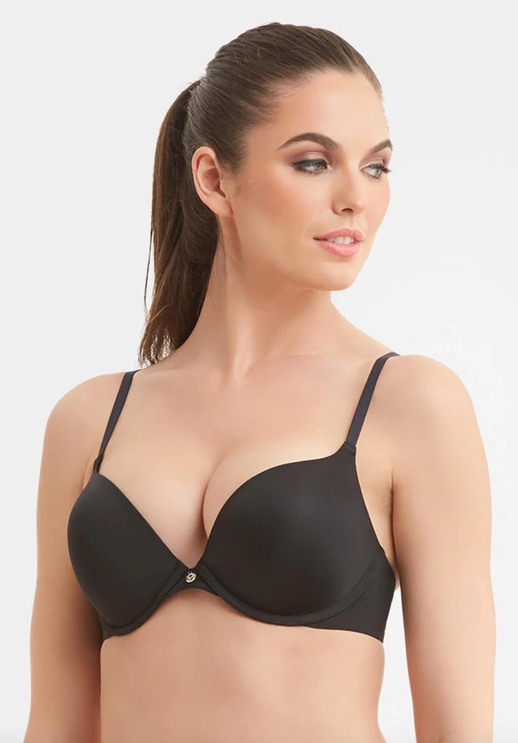 The ultimate push-up for ultimate drama. This ultra-soft microfiber bra will add up to two cup sizes thanks to our unique pillow cup design. Double layer side wings provide support and the convertible multi-channel multi-position straps mean you can wear this bra with any glamorous look – from classic, to crossback to halter.