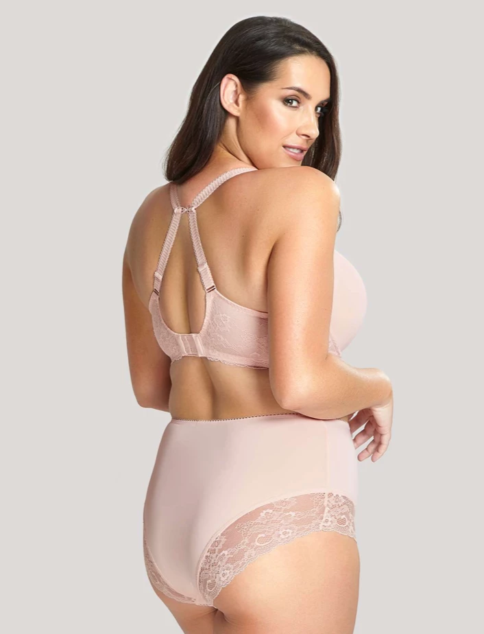 Sasha in Soft Pink or Ink, with delicate lace detailing combined with smooth moulded cups to create a pretty essential set. Sasha creates a seamless silhouette and a flattering plunging shape, perfect for creating a lovely shape under your favourite plunging outfits. If you want a little added support, use the J-Hook to convert your straps to a racerback!